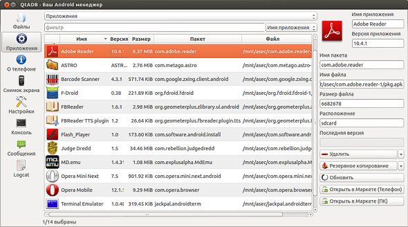 И наконец, самая тяжеловесная и мощная программа, которая в графическом режиме также обеспечивает доступ к функциям ADB. Приложение QtADB является полностью кроссплатформенным, версии которого имеются для Windows, Linux и Mac OS.