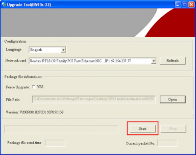 6. After a while indicator will turn red; press the “Stop” button on the upgrade tool, disconnect the LAN cable from the PC.