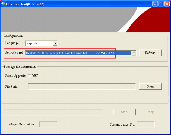 - Launch Multiupgrade tool. Select Network card to which your router is connected to