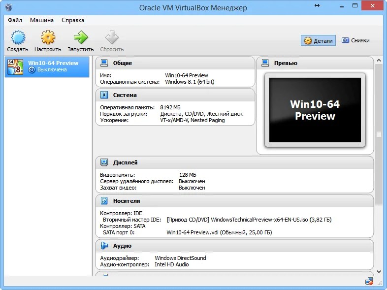 Настройки VirtualBox для Windows 10