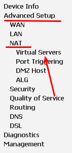 Переходим Advanced Setup -> NAT -> Virtual Servers
