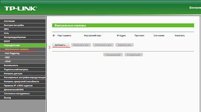 - Зайти в настройки виртуальных серверов TP-LINK