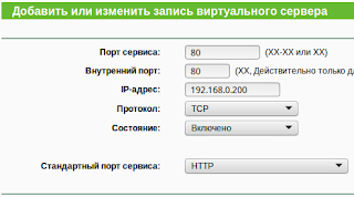 | Пример заполнения параметров настройки виртуального сервера TP-LINK |