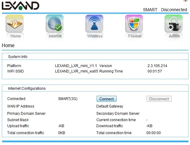 Кто не разбирается-, поясняю — данный скрин говорит об упавшем DHCP, не может LXR mini дать себе IP адрес по умолчанию (192.168.169.1), вместо него выдается несоответствующий нашей сети бред и как следствие невозможно войти в интерфейс. Происходит это вследствии неполного возврата настроек к исходным, у меня остался рабочим Wi-fi Hotspot, а должен был переключиться на Smart!