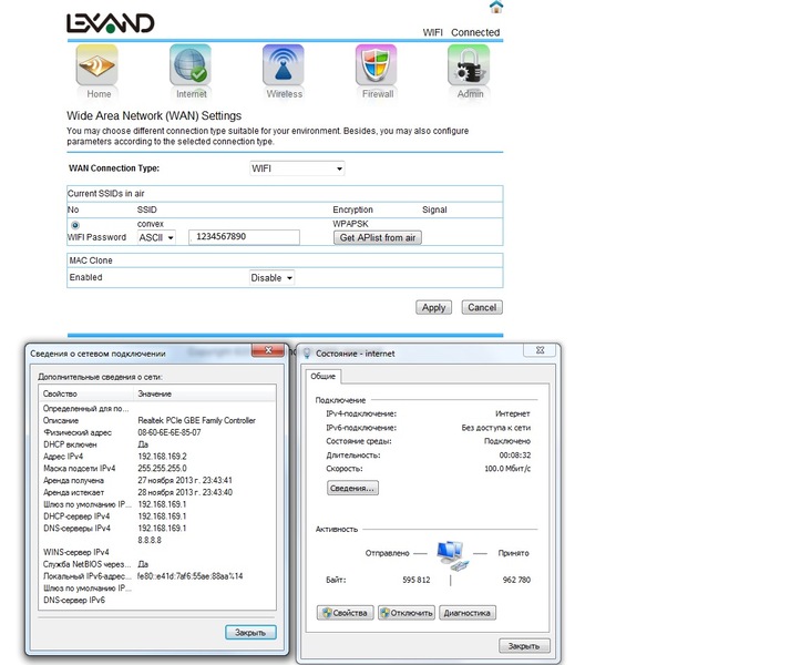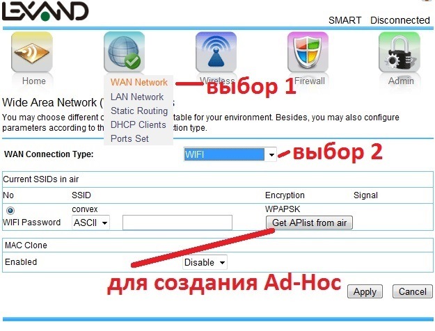 - Режим клиента. Используется, когда надо организовать беспроводную точку доступа для подключения к Internet.