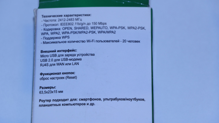 | TP-LINK TL-MR3020 | Диапазон — 2.4 ГГц (300 Мбит/с); Wi-Fi стандарт — 802.11 b, a, g, n; Мобильные сети — 3G или 4G модем (опционально); Поддержка протоколов — DHCP, Firewall, NAT, SPI, DDNS, DMZ; Дополнительно — гостевая сеть, технология-WISP, нет батареи из-за этого такая цена. |