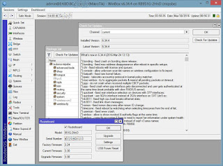 Делается это крайне просто, вначале обновляем прошивку через меню System -> Routerboard -> Upgrde, а потом обновляем пакеты из System -> Packages -> Check for updates. После обновления у меня получилась версия прошивки 3.30, а версия пакетов 6.34.4 от 2016-Mar-24 13:13.