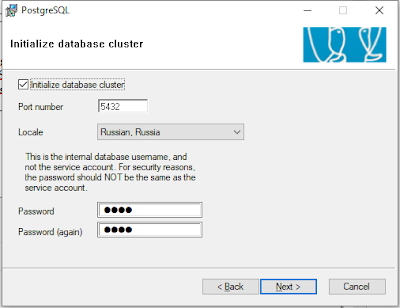 Запустите файл postgresql-9.1.2-1.1C(x64).msi, в папке windows выбрать подпапку 64 или 86, в зависимости от разрядности ОС. Можно оставить практически всё по умолчанию. Необходимо обратить внимание на следующие моменты: