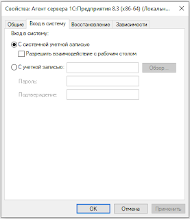 1C:Enterprise 8.3 Server Agent (x86-64) пока вход в систему не был переделан с системной учетной записью.